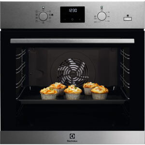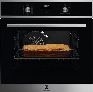 - Духовой шкаф Electrolux EOD5C70BX. Долговечный и надежный прибор с функцией PLUSSteam, благодаря которой можно стерилизовать банки и получать пышные, хорошо пропеченные пироги. Присутствует восемь режимов готовки, удобная панель с таймером для отслеживания процесса и двумя уровнями противней.