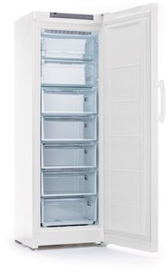 Представляют собой вертикальные устройства с дверцей, открывающейся вперед, как у обычного холодильника. Эти модели морозильников имеют множество полок и ящиков, что делает их удобными для хранения различных продуктов и легкого доступа к ним. Морозильные камеры отличаются разнообразием объемов, от компактных моделей объемом 50-100 литров, предназначенных для небольших кухонь или квартир-студий, до крупных моделей объемом более 300 литров, подходящих для больших семей.
