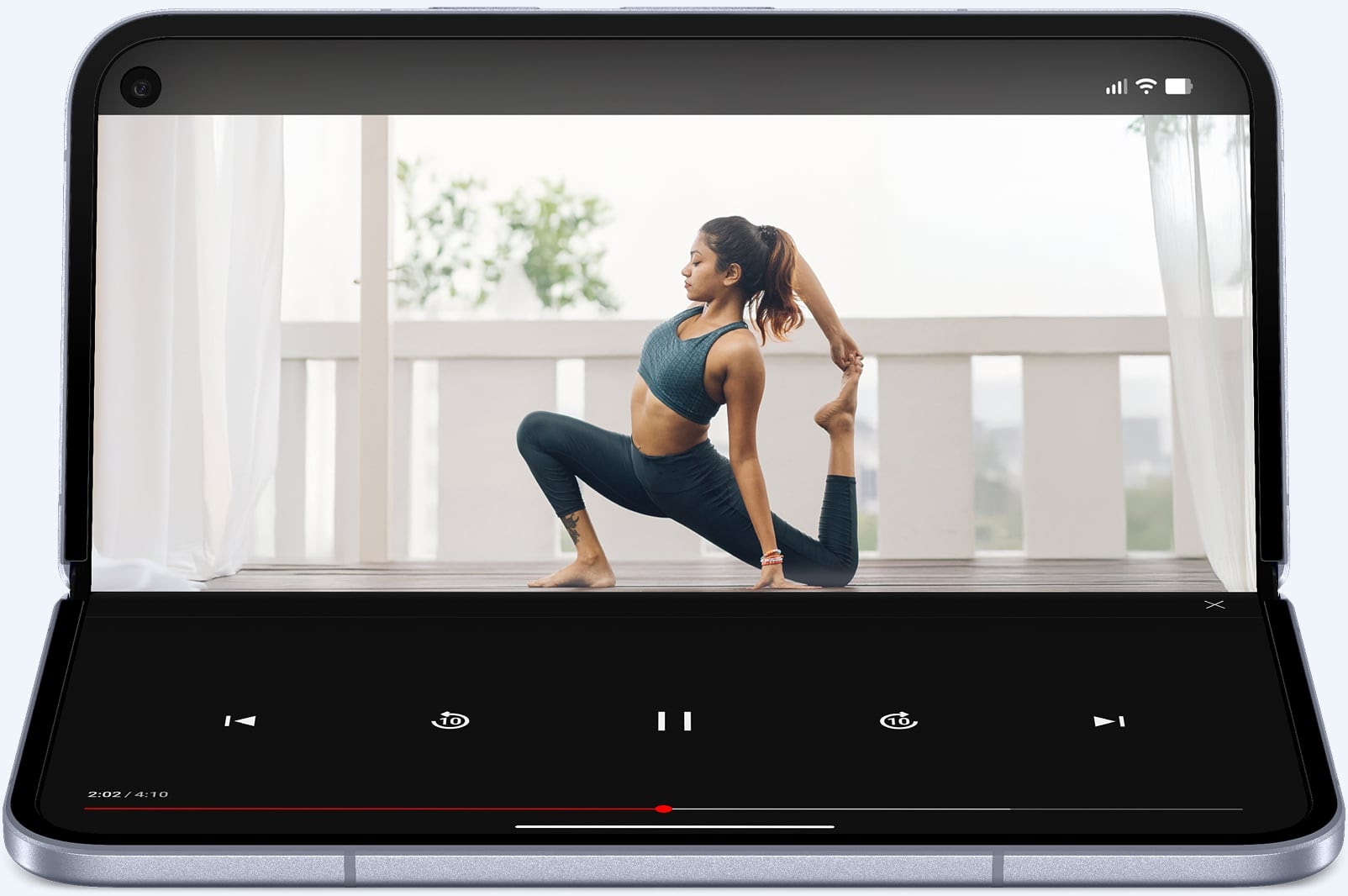 Две фронтальные камеры по 10 МП — во внешнем и внутреннем экранах — поддерживают симметричный опыт видеосвязи и селфи без танцев с запуском отдельных режимов. Компактные вырезы сохраняют полезную площадь дисплея, а алгоритмы стабилизации и тонирования компенсируют физические ограничения оптики.
