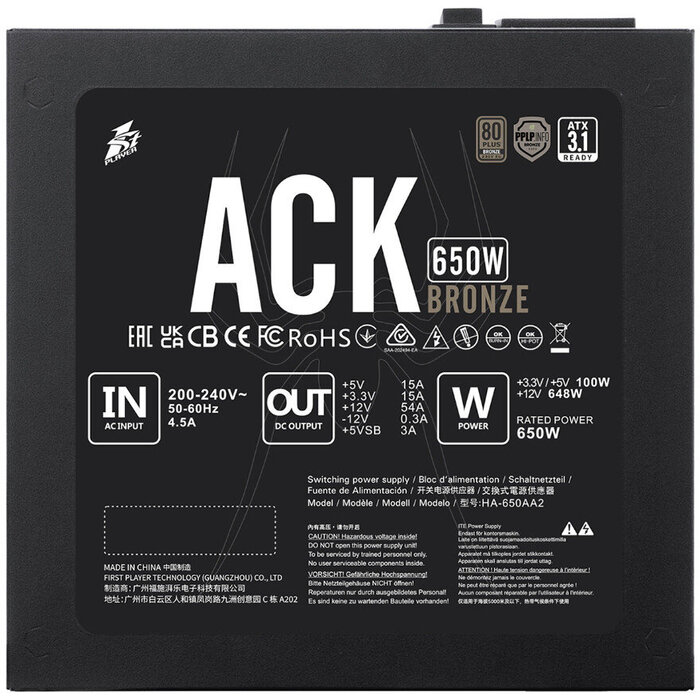 1stPlayer ACK HA-650AA2 Black, 650 Вт