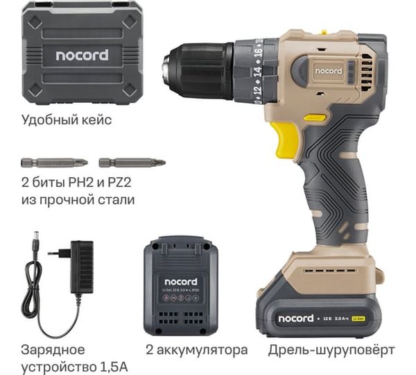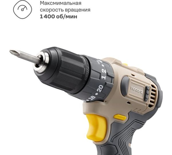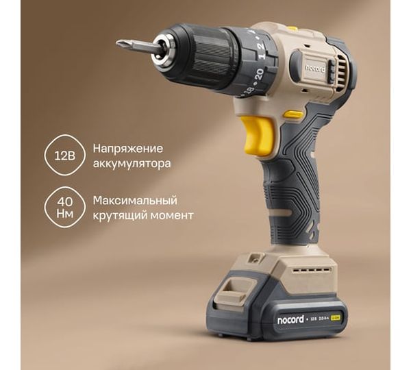 Аккумуляторная дрель-шуруповерт Nocord 901068.NBDI-12.2.20.A-2, 21 В, 40 Нм, 2 А·ч
