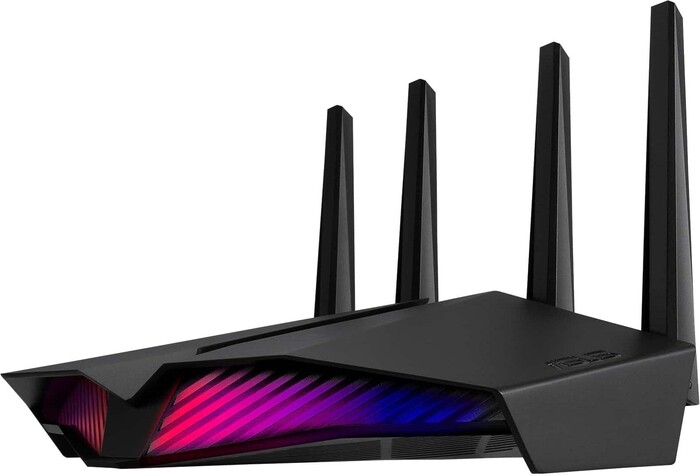 Одна из топовых моделей ультраскоростных беспроводных геймерских маршрутизаторов (роутеров) Asus класса AX5400 с поддержкой широкой полосы пропускания — 160 МГц, которая приближает реальную скорость Wi-Fi-соединений к максимальной теоретической. Относится к флагманским продуктам образца 2020 года, поддерживающим стандарт Wi-Fi 6, который обеспечивает высокую скорость передачи данных и минимальные задержки для комфортного геймплея в динамичных игровых проектах ААА-уровня и киберспортивных дисциплинах.