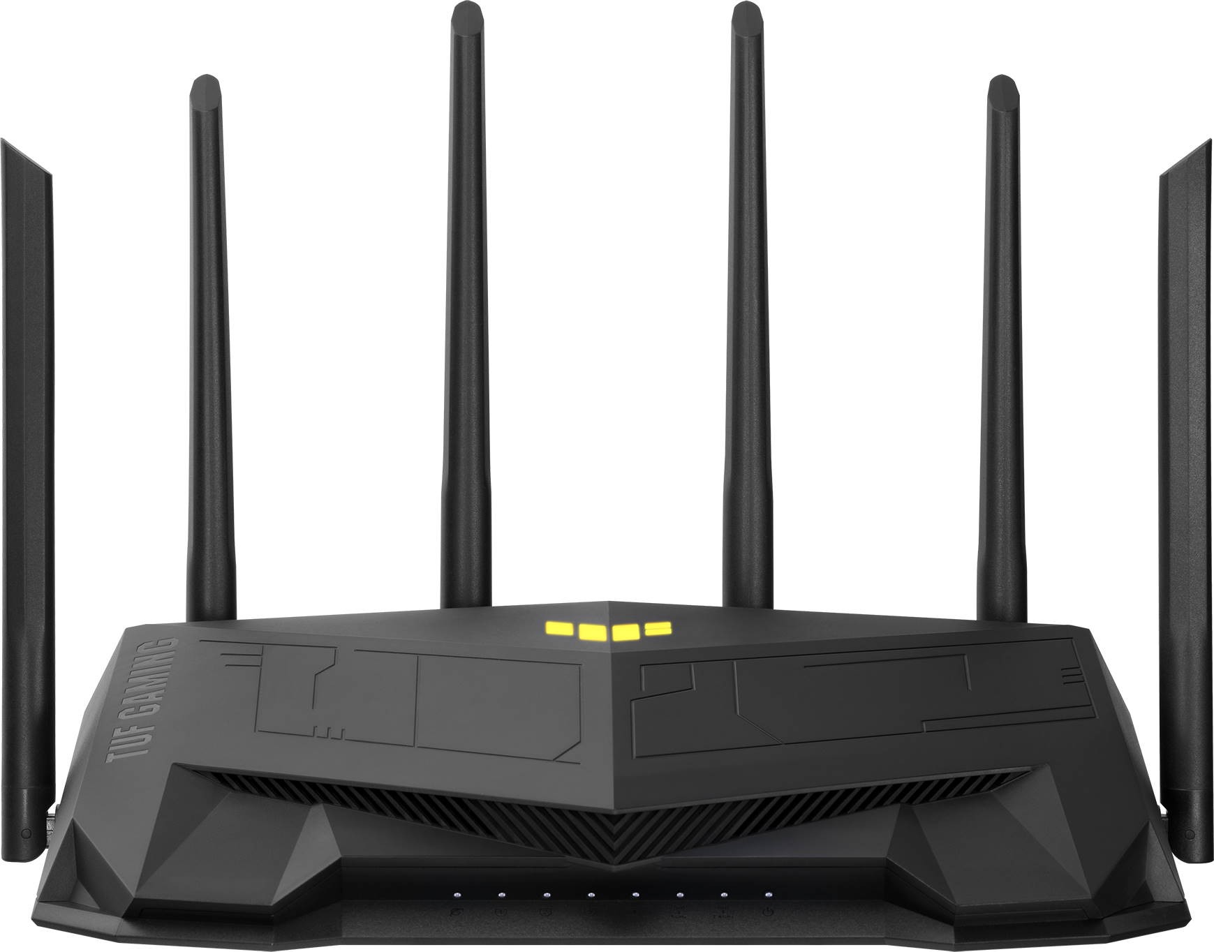 Для организации входящего подключения может использоваться WAN LAN-порт GbE, а технология Dual WAN дает возможность для эффективного резервирования и балансировки сетевой нагрузки. Быстродействующий порт USB 3.2 Gen1 может использоваться для подключения внешних накопителей, а роутер Asus TUF Gaming AX5400 способен играть роль медиасервера. Благодаря передовой аппаратной платформе на базе 3-ядерного процессора Broadcom BCM6750 (1,5 ГГц), обеспечивается теоретическая пропускная способность до 574 Мбит/с в 2,4 ГГц диапазоне и до 4804 Мбит/с на частоте 5 ГГц. Получить скорости такого порядка на практике можно только при использовании клиентских устройств с поддержкой режима MIMO 4T4R (4х4), широких каналов (160 МГц) и OFDMA-модуляции с 1024-QAM. Большой набор из 6-и антенн и технология виртуального луча Beamforming позволяют создавать большую площадь Wi-Fi-покрытия.