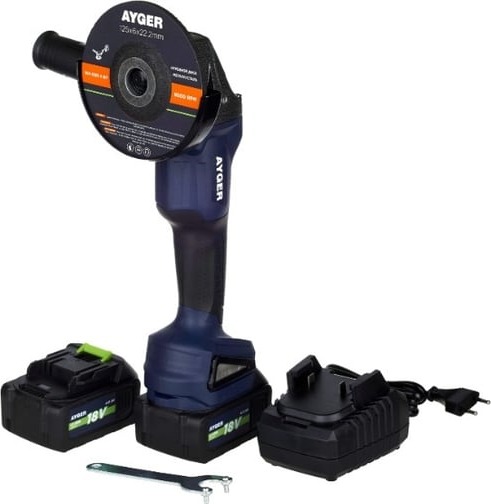 Машина углошлифовальная аккумуляторная AYGER бесщеточная, с двумя аккумуляторами 4Ah AG18BL4, 125 мм, 8500 об/мин