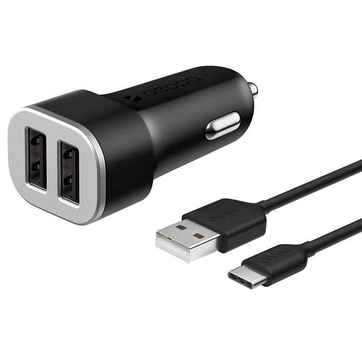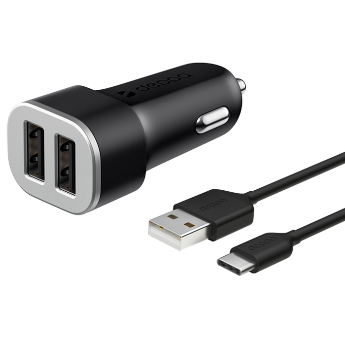 АЗУ Deppa 2 USB 2.4А + кабель USB Type-C, Ultra (11284), черный