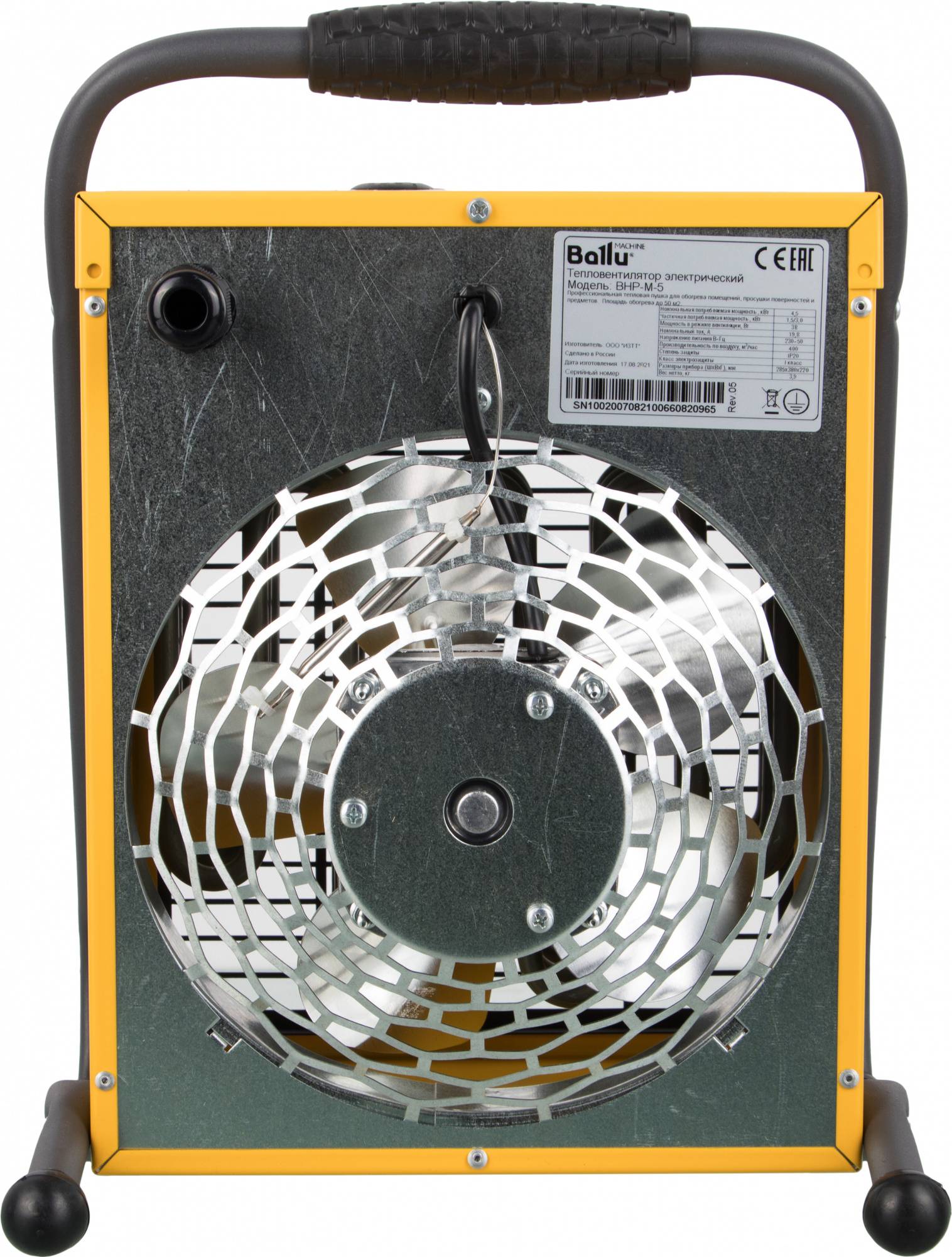 Антивандальное износостойкое покрытие опор и решетки, Коммутационный люк для быстрого электрического подключения (для моделей от 24 кВт), Функция ручного перезапуска защитного термостата для безопасной эксплуатации пушек без присмотра, Две ступени мощности, режим вентиляции без нагрева