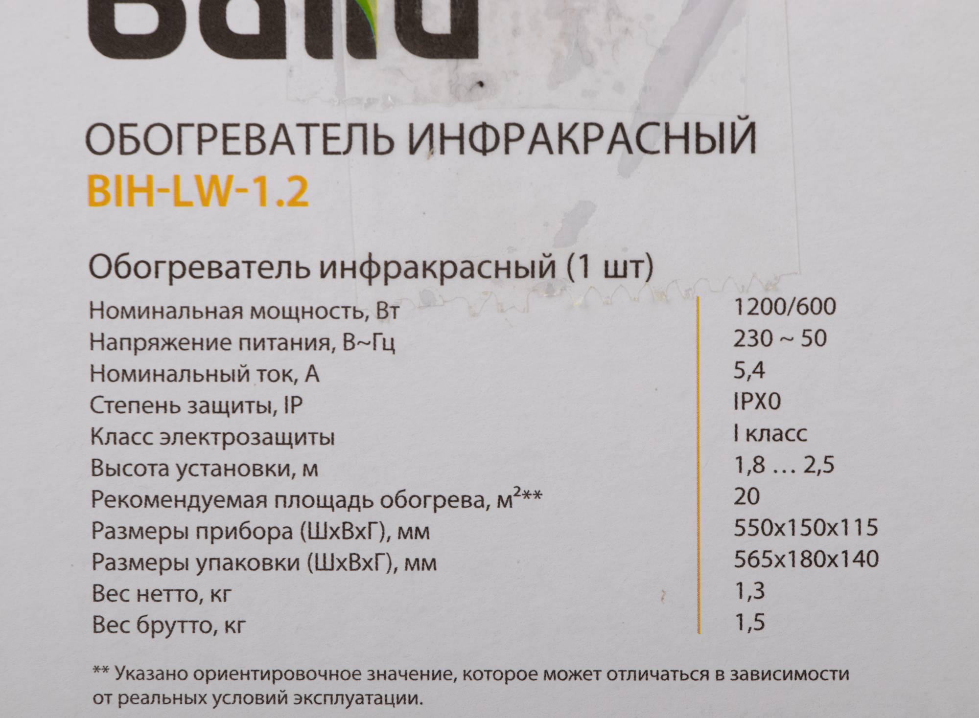 Ballu BIH-LW, 1200 Вт