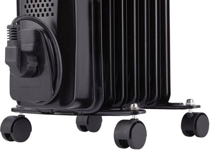 защита от перегрева, индикатор включения/выключения, место для хранения сетевого шнура, ролики для перемещения, ручка для перемещения, термостат