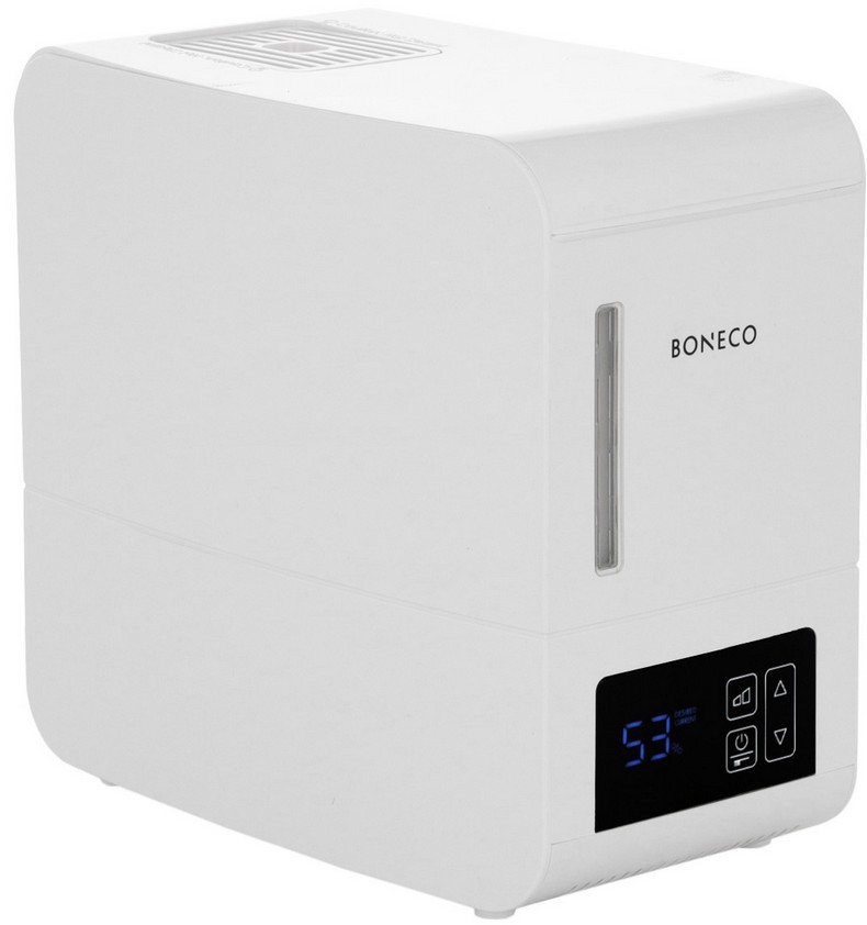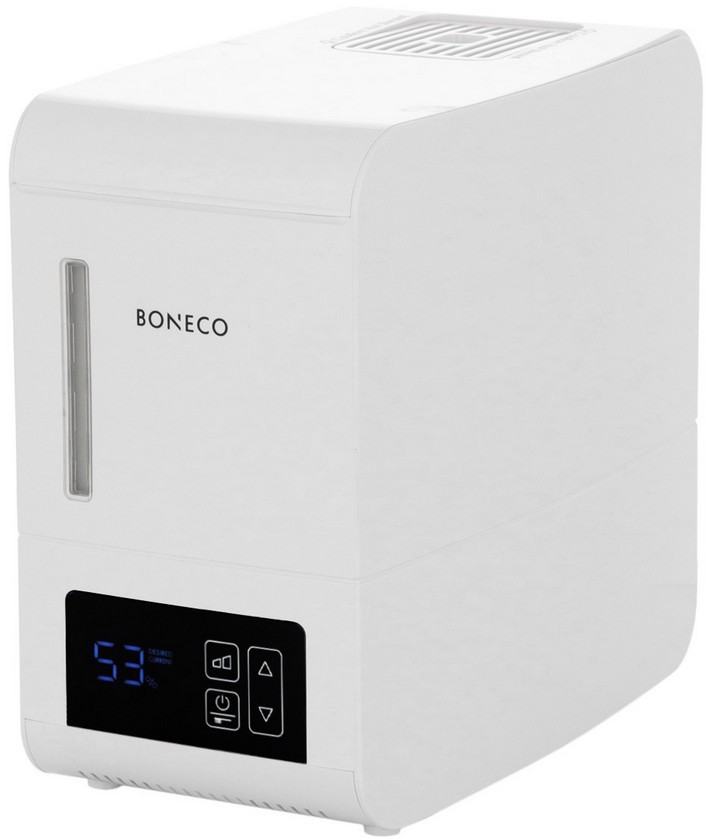 Увлажнитель воздуха Boneco S250, белый — паровой прибор для поддержания комфортного уровня влажности в помещениях площадью до 40 м². Компактный корпус и электронное управление сочетаются с набором защитных и сервисных функций автозащита при отсутствии воды, индикация рабочих состояний и режимов, а также встроенный аромат-контейнер для ингаляций и ароматерапии.