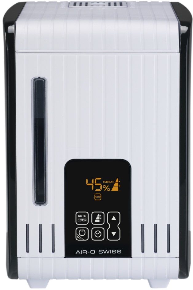 Управление электронное с автоматическими режимами автоматический режим и режим поддержания влажности. Встроенный гигростат и два предустановленных автоматических значения (50% и 45%) упрощают поддержание требуемых параметров. Доступна регулировка скорости вентилятора и интенсивности испарения, а также таймер для планирования работы.
