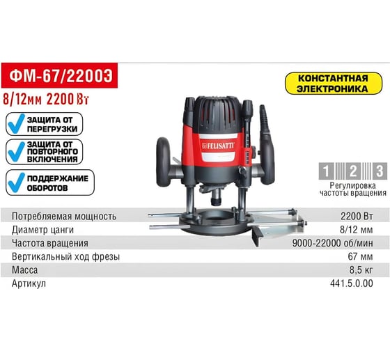 адаптер для пылеудаления в комплекте, встроенный патрубок пылеотсоса, копировальные вставки в комплекте, наличие микролифта, параллельный упор в комплекте, регулировка оборотов