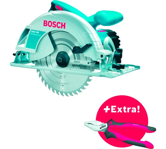 Циркулярная пила BOSCH GKS 190 + универсальные плоскогубцы Wiha, 190 мм, 5500 об/мин, 1400 Вт