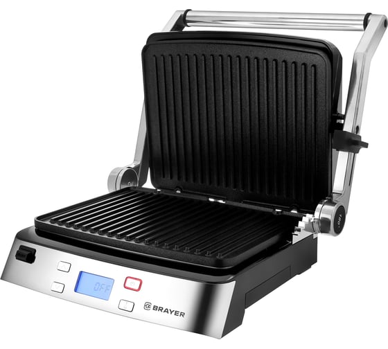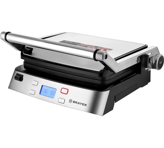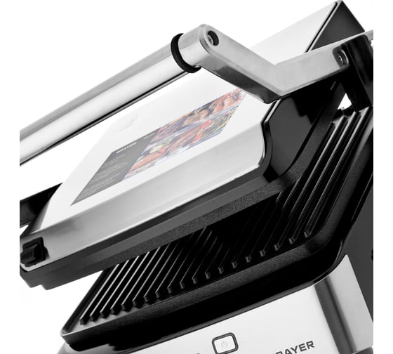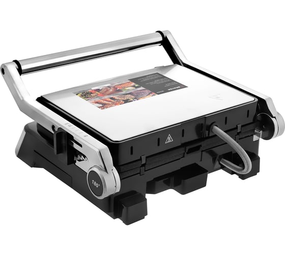 антипригарное покрытие, индикатор нагрева, открытие на 180°/положение барбекю, ручка с защитой от нагревания