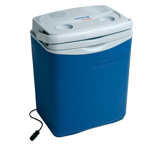 Держит температуру на 16°С ниже температуры окружающей среды, Длина кабеля 2.75 м, Емкость 24 литров - легко вмещает 2 бутылки по 1.5 л, Отсек для хранения кабеля, Питание от автоприкуривателя 12 В или от сети 230 В (при наличии адаптера), Ручка для удобства переноски