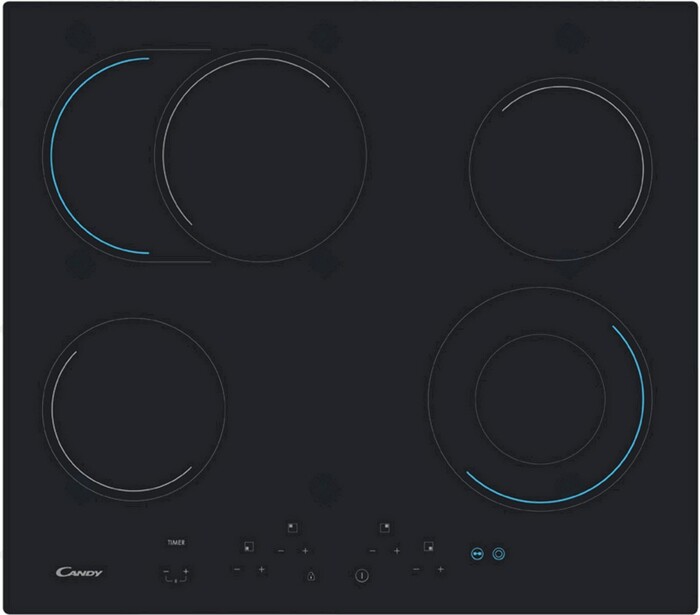 индикатор остаточного тепла, защита от детей, защитное отключение конфорок