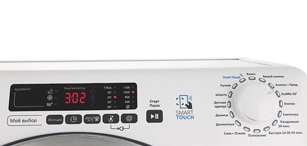 Выбор температуры стирки, автовзвешивание белья, функция пара