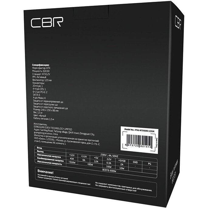 CBR PSU-ATX600-12GM, 600 Вт