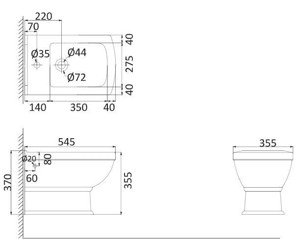 355x355x545 мм