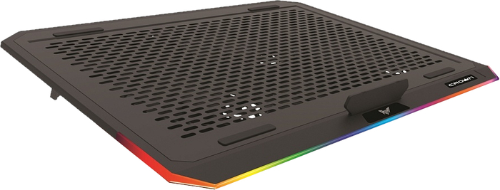 USB-хаб, подсветка, регулировка наклона 3 уровня наклона, регулировка скорости вентилятора, фиксаторы ноутбука