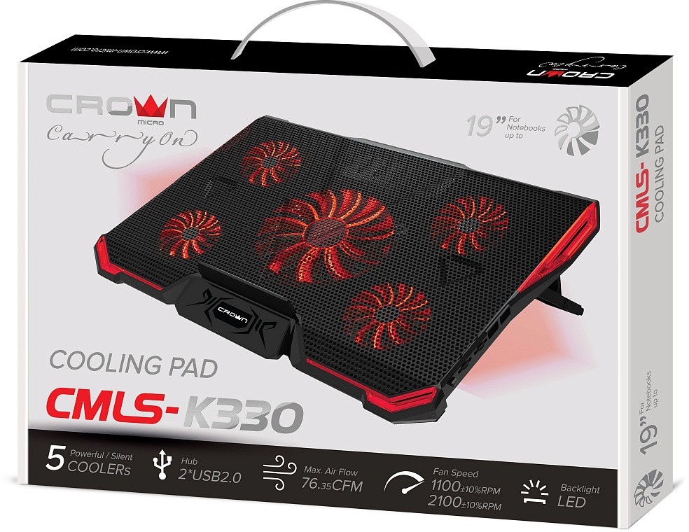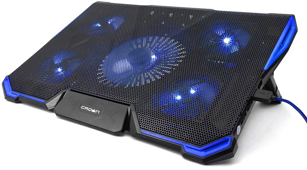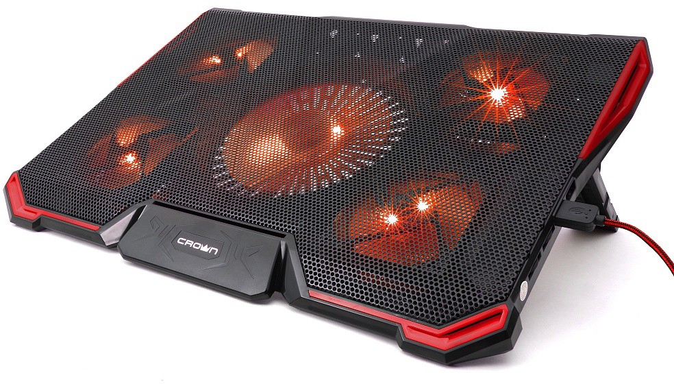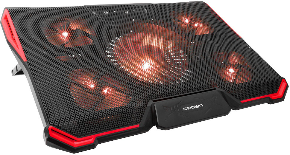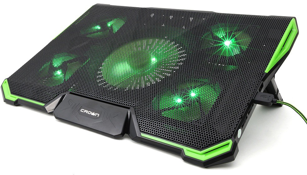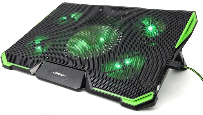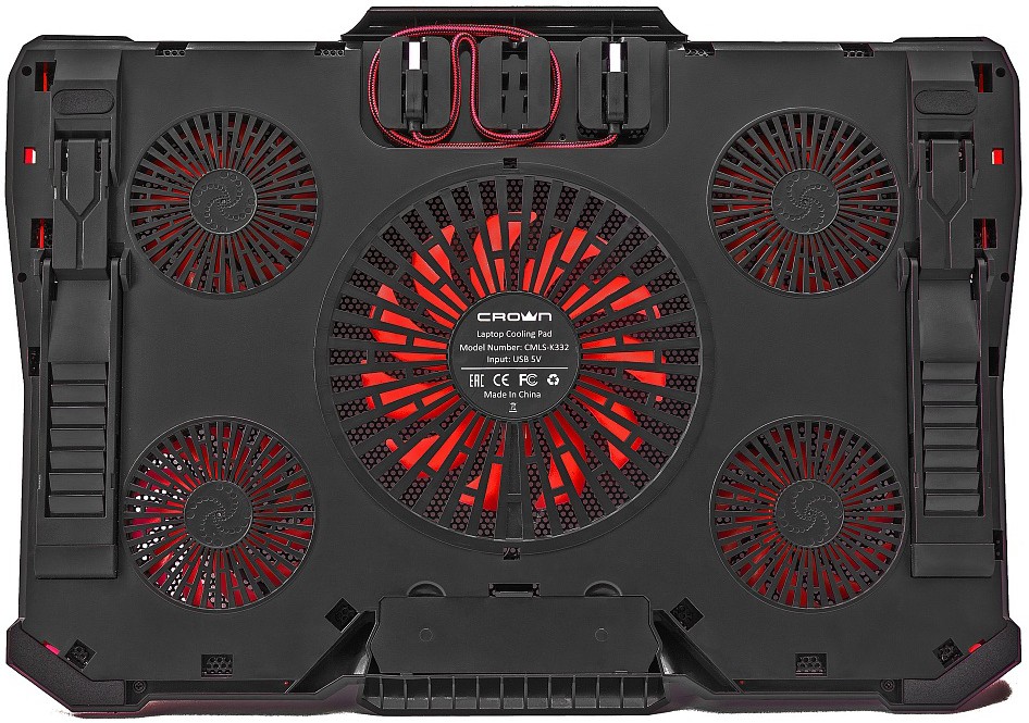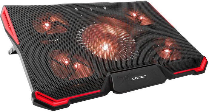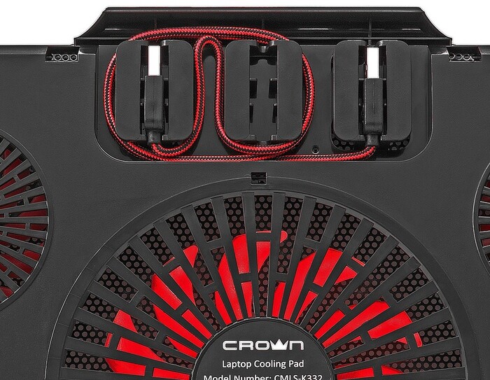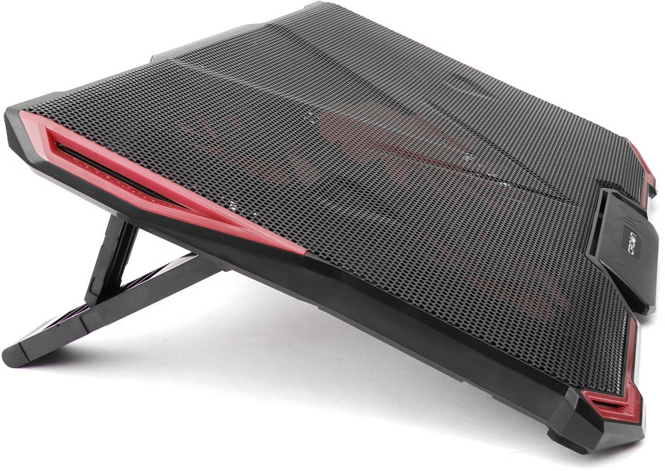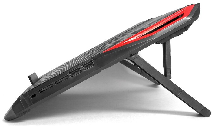 USB-хаб, подсветка, регулировка наклона 7 уровней, регулировка скорости вентилятора, фиксаторы ноутбука