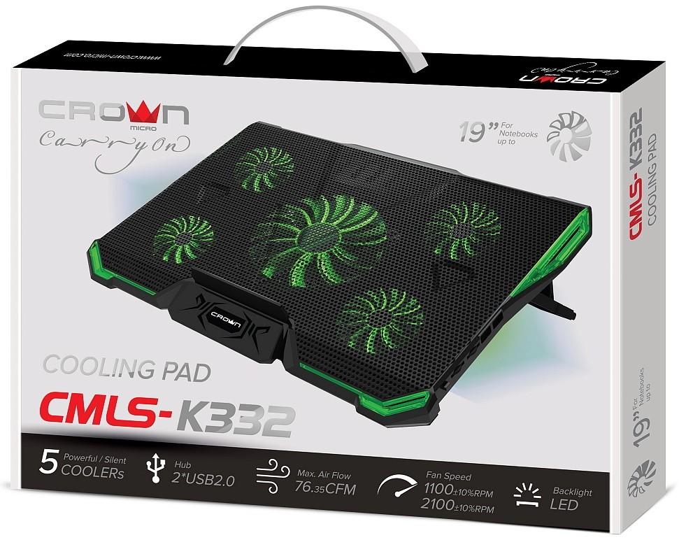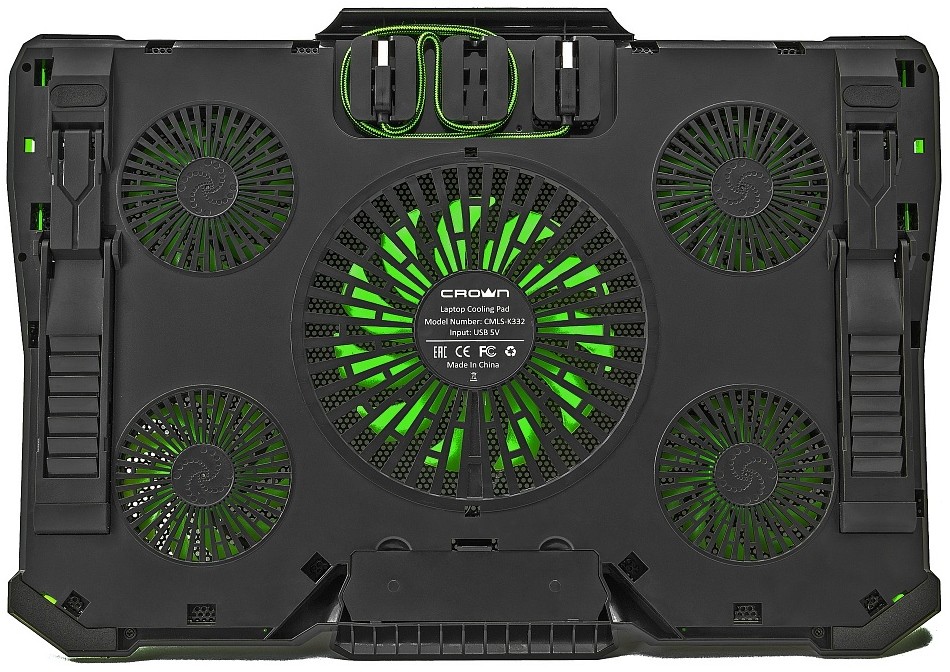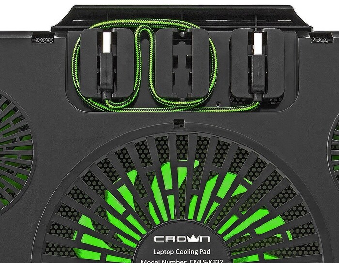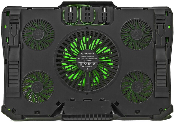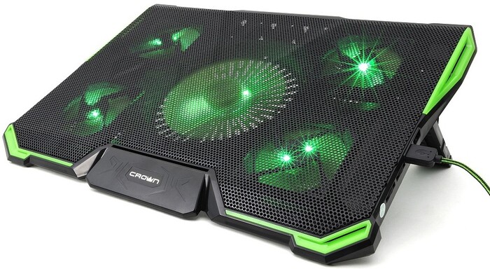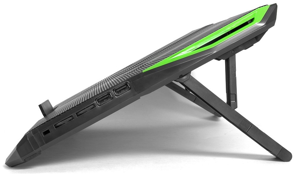 USB-хаб, подсветка, регулировка наклона, регулировка скорости вентилятора, фиксаторы ноутбука