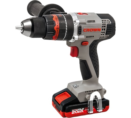 Быстрозажимной патрон – для простой смены оснастки, Дополнительная рукоятка для надежного удержания, Кейс – для удобства хранения и транспортировки инструмента и принадлежностей, Небольшой вес снижает энергоемкость работы, Подсветка рабочей зоны упрощает ведение работы в условиях недостаточной освещенности, Универсальные аккумуляторы CROWN 20VMax в комплекте, Функция реверса упрощает выведение застрявшего в материале сверла