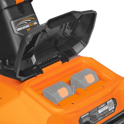 Главное преимущество обрезиненных шнеков заключается в возможности бережно удалять снег вплоть до основания практически с любого типа покрытия: асфальта, плитки или брусчатки, Дополнительно предусмотрена удобная функция кратковременного включения фар на 10 секунд без запуска самого агрегата, 21В Li-ion единая платформа, 3 яркие LED фары, Бесщеточный двигатель обеспечивает высокую мощность при меньшем потреблении энергии, что позволять работать до 30% времени дольше на одном заряде аккумулятора, Бесщеточный электродвигатель, Вертикальное хранение, Дальность выброса снега легко регулируется в диапазоне от 1 до 10 м, Дополнительные колеса, Легкое изменение направления выброса снега с панели оператора, Модель совместима со всеми аккумуляторными инструментами и батареями Daewoo линейки 21В, Обеспечивают легкость передвижения и маневренность снегоуборщика, снижая усилия оператора и повышая производительность очистки территории, Обеспечивают прочность конструкции, устойчивость к коррозии и долговечность эксплуатации снегоуборщика, сохраняя легкий вес и удобство управления., Резинометаллические шнеки, Современная конструкция и складная рукоятка позволяют компактно хранить снегоуборщик в вертикальном положении, значительно сокращая занимаемое пространство, Удобное изменение дальности выброса, Удобный рычаг управления позволяет быстро изменять направление выброса снега на угол до 180°, не прерывая рабочий процесс и заметно ускоряя очистку территории, Усиленные алюминиевые рукоятки, Эргономичная рукоятка с прорезиненной накладкой обеспечивает комфортный и уверенный хват, снижает утомляемость и повышает удобство управления снегоуборщиком, Эргономичная рукоятка управления, Эффективно справляются как со свежевыпавшим лёгким, так и с мокрым плотным снегом, Яркие светодиодные фары качественно освещают рабочую зону перед снегоуборщиком, гарантируя комфорт и безопасность при проведении работ в тёмное время суток
