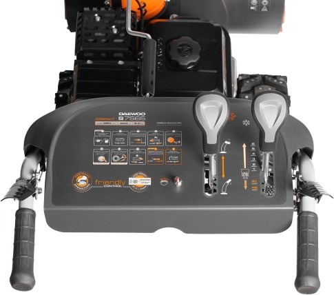 2-х сторонние направляющие лыжи позволяют регулировать высоту ковша над поверхностью в зависимости от высоты снежного покрова и типа убираемой поверхности, тем самым, избегая ее поврежденияCтальной желоб выброса снега, 3-х летняя гарантия Daewoo, Агрессивные шнеки-ледорубы, Агрессивные шнеки-ледорубы предназначены для работы с различным типом снега, вплоть до слежавшегося и обледенелого, Большие зимние пневматические колеса, Взаимная блокировка рукояток, Выходной вал редуктора крепится на подшипниках большого диаметра, что обеспечивает высокую устойчивость механизмов к вибрации и ударам, Датчик уровня масла, Двигатель Daewoo зимней серии 220 snow, Держатель троса, Защита от ржавчины ZN+, Идеальная проходимость и маневренность, Измельчая снег, шнеки подают его на крыльчатку выброса, Изменение угла выброса на 180 градусов происходит всего за 2,5 оборота и дает возможность мгновенно изменять направление выброса снега, Колеса EX‑ICE обладают лучшим сцеплением с поверхностью среди всех зимних шин, Лучшая проходимость и маневренность в классе снегоуборщиков, Направляющие лыжи, Обеспечивает надежное крепление троса поворота желоба и исключает его повреждения о горячие части двигателя, Основной вес снегоуборщика приходится на ось колес, что гарантирует лучшее сцепление с поверхностью, Панель управления, Повышенный моторный ресурс, При зажатии обеих рукояток происходит их взаимная блокировка, Проходимость и маневренность, Расширители ковша в комплекте, Самовосстанавливающийся редуктор 2-х сторонние направляющие лыжи, Система быстрого изменения направления выброса, Срезные болты на шнеках защищают редуктор от перегрузок, Такая развесовка предоставляет оператору легкость маневрирования и лучшую проходимость в классе, Увеличенный глушитель и сниженный уровень шума, Увеличенный до 4.5 литров топливный бак, Уверенный запуск при отрицательных температурах, Уникальные колеса EX‑ICE WHEELS, Усиленный редуктор, Усиленный редуктор с двумя дополнительными опорами передает до 95% крутящего момента двигателя, Широкие безвоздушные колеса созданы специально для снегоуборщиков, электрический стартер, Электрозапуск от встроенной батареи 21 Volt, Это позволяет управлять снегоуборщиком даже одной рукой, в том числе изменять направление выброса снега без остановки работы, LED фара, Яркая LED фара обеспечивает освещение рабочей зоны перед машиной, помогая работать в темное время суток