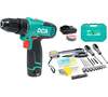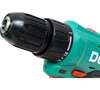 блокировка шпинделя, зарядное устройство в комплекте, индикатор уровня зарядки на корпусе дрели, наличие подсветки, наличие реверса, съемный патрон, тормоз двигателя