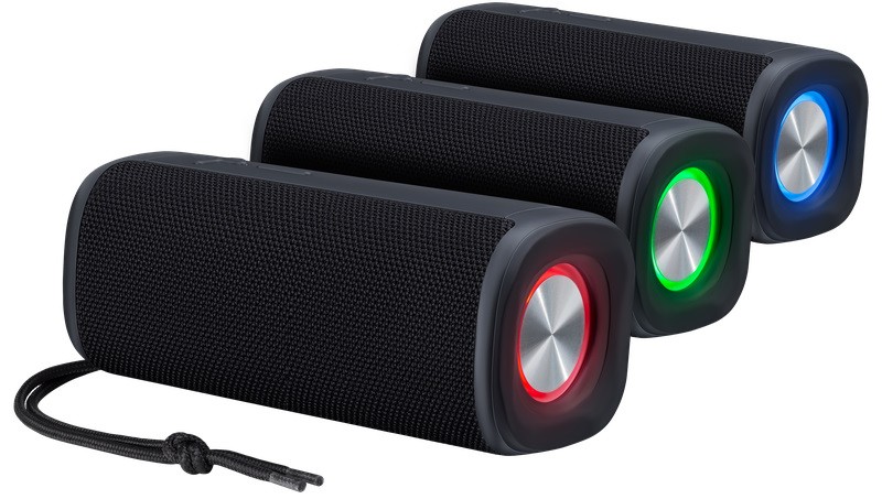 Световые эффекты добавляют визуальную привлекательность. Встроенное FM-радио и поддержка microSD расширяют варианты воспроизведения. Встроенный микрофон позволяет использовать устройство для громкой связи. Ручка и ремешок делают модель удобной для переноски и активного использования.