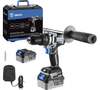 Бесщеточный двигатель обеспечивает высокую производительность и долгий срок службы, Два аккумулятора повышенной емкости по 4 Ач в комплекте для продолжительной работы, Для удобного хранения и безопасной транспортировке товар поставляется в ударопрочном кейсе, Для удобного хранения и безопасной транспортировки, Магнитная панель для удержания крепежа/оснастки, Мощный бесщёточный двигатель, максимальный крутящий момент - 135 Нм, Наличие осевого удара для сверления твердых материалов, Обрезиненная рукоять для удобного хвата, Одномуфтовый металлический патрон с максимальным размером зажимаемой оснастки в 13мм, Подсветка рабочей зоны с возможностью ручного включения/отключения