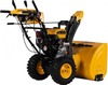 Большие проходимые колеса 15 дюймов с зимним протектором, Двойная яркая LED фара, Двусторонняя разблокировка дифференциала, Разборный шнек с агрессивным профилем ледорубов, Рукоятка поворота и наклона желоба на панели управления, Увеличенный объем двигателя, Функциональная пластиковая панель управления, Электростартер от розетки 230В