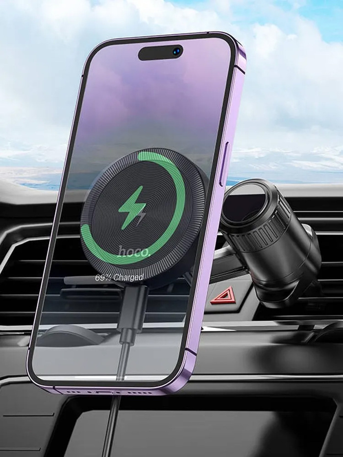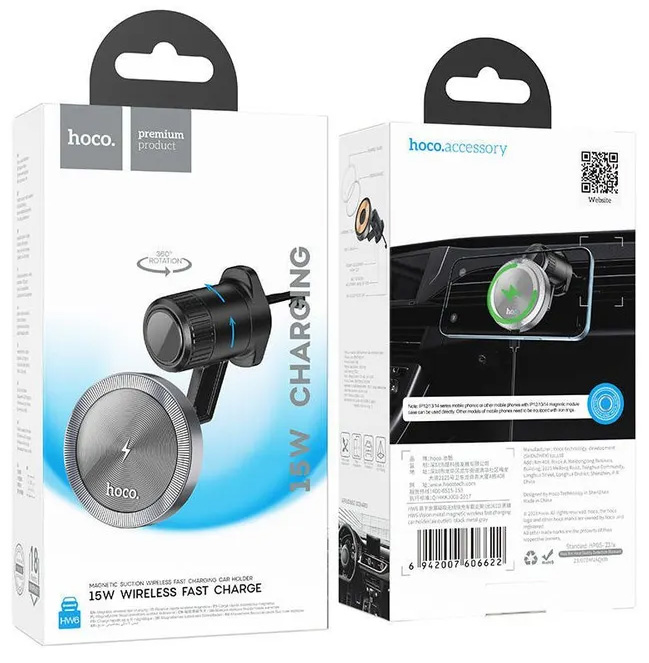Держатель в авто с быстрой беспроводной зарядкой Hoco HW6, черный