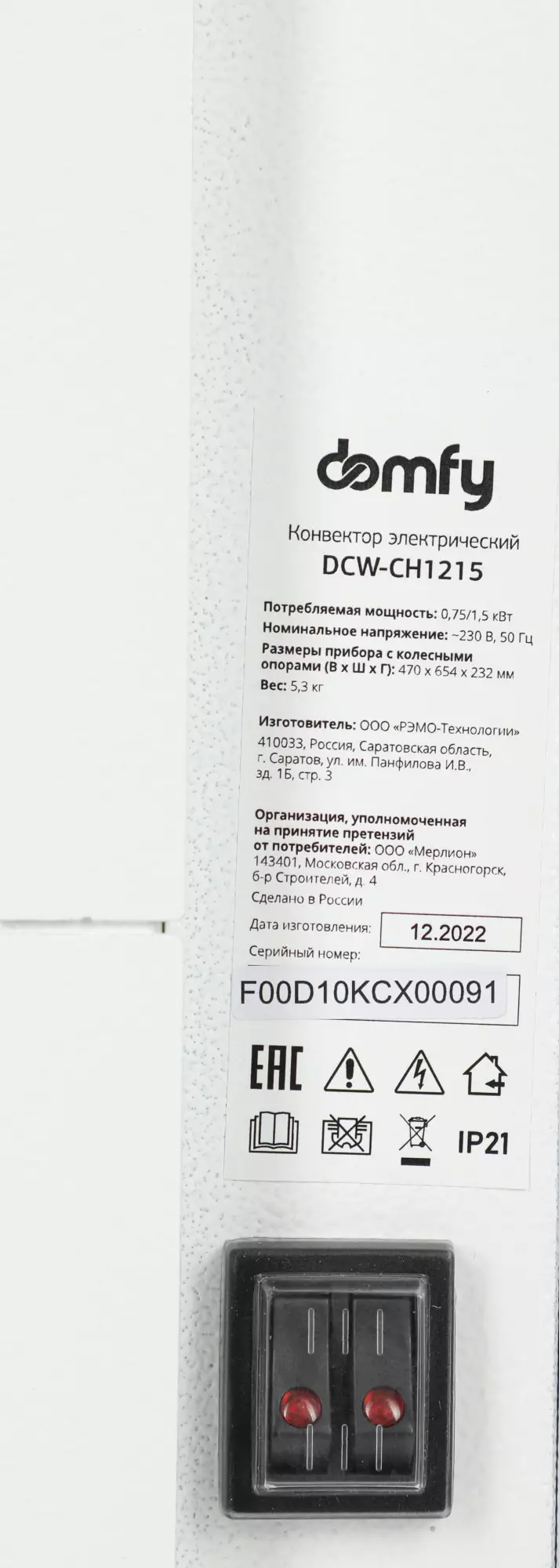 Domfy DCW-CH1215, 1500 Вт