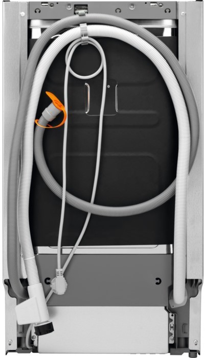 Габариты устройства — 85 см в высоту, 45 см в ширину и 62 см в глубину, что позволяет легко интегрировать машину в компактные кухонные пространства. Верхняя корзина оборудована складной полкой для чашек и корзиной для столовых приборов, в нижней расположена несъемная полочка для тарелок. Высота корзины регулируется, что упрощает размещение посуды разных размеров. Внутренняя поверхность выполнена из нержавеющей стали, устойчивой к коррозии и обеспечивающей гигиену.