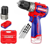 LED-подсветка: работа в затемненных зонах, Высокая мощность для работы с различными материалами, Длительное время работы благодаря двум аккумуляторам, Металлический самозажимной патрон 13 мм: надежная фиксация оснастки, Прочный металлический патрон, Точная настройка крутящего момента, Удобная работа в труднодоступных местах благодаря подсветке, Функция блокировки шпинделя: быстрая смена оснастки, Эргономичная рукоятка с прорезиненными вставками: удобный хват и защита от вибрации