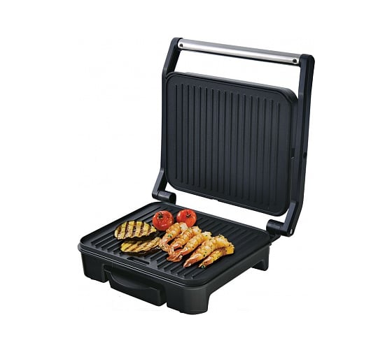 автоматическое отключение, антипригарное покрытие, индикатор нагрева, лоток для жира и сока, открытие на 180°/положение барбекю, регулировка температуры, ручка с защитой от нагревания, съемные пластины, таймер обратного отсчета