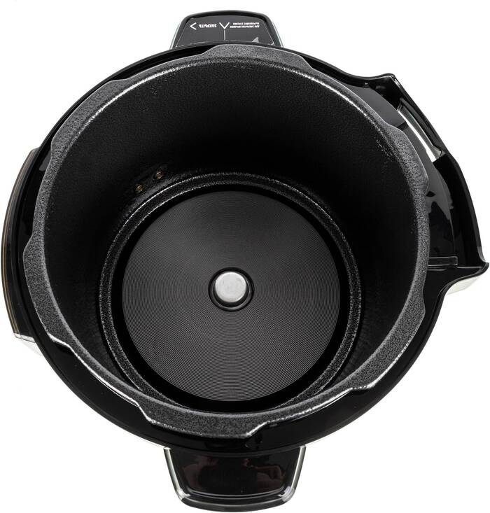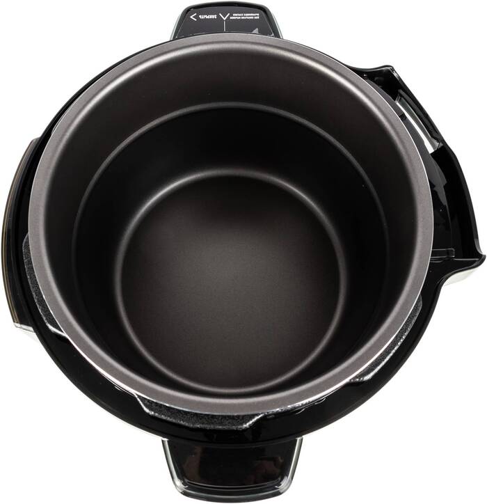 Объем чаши шесть литров означает меньше перекладываний и возможность готовить крупные порции целиком, что экономит время на порционировании и позволяет готовить блюда для нескольких человек. Тефлоновое покрытие облегчает мытье и снижает риск пригорания, что упрощает уход после интенсивного использования.