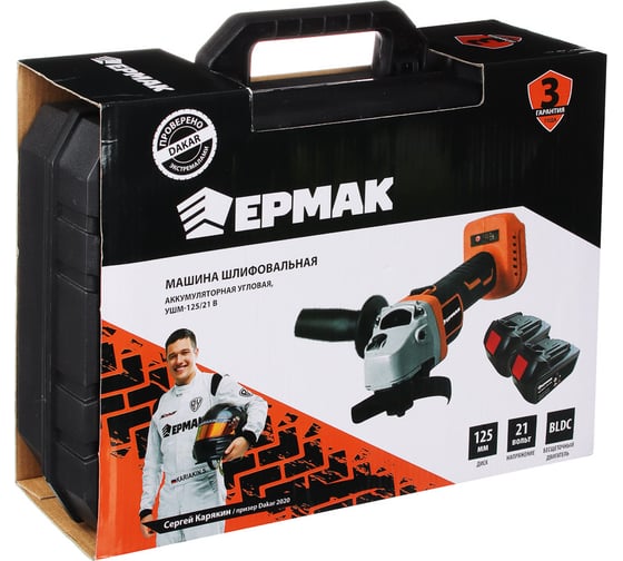 Аккумуляторная угловая шлифмашина ЕРМАК УШМ-125/21В, 125 мм, 8000 об/мин