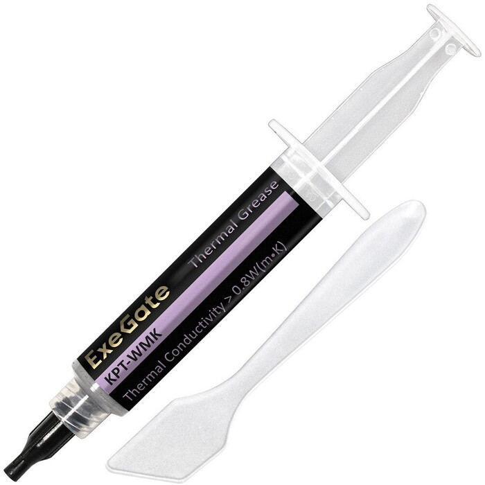 Термопаста ExeGate KPT-WMK, 8 г предназначена для организации теплового контакта между охлаждающим элементом и тепловыделяющей поверхностью в компактных сборках.