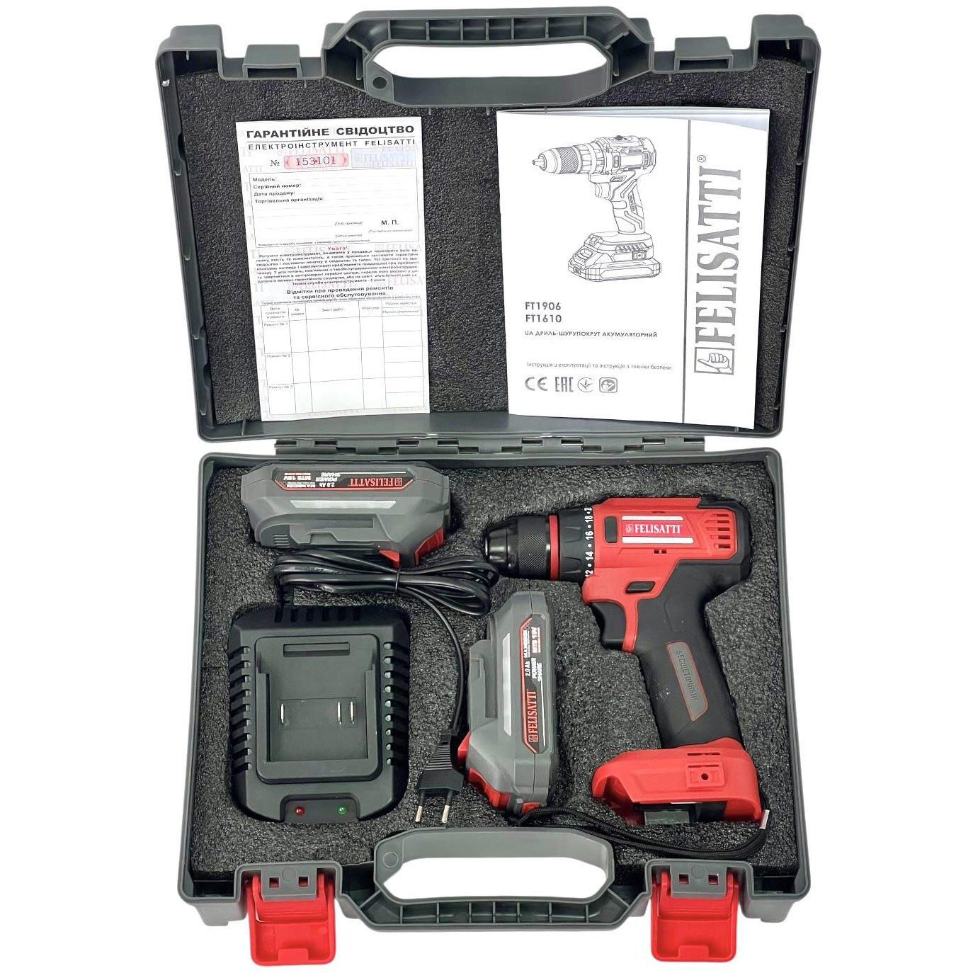 зарядное устройство в комплекте, съемный патрон, универсальный аккумулятор