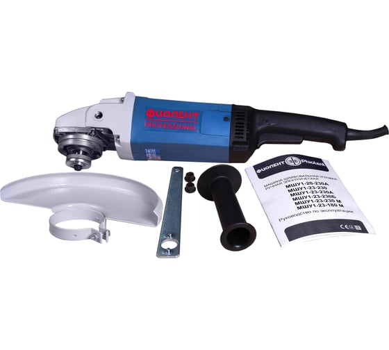 Блокировка шпинделя - для простой смены оснастки, Дополнительная рукоятка - для надежного удержания угловой шлифмашины Фиолент МШУ 1-23-230-Б во время работы., Кожух из холоднокатаной листовой стали 2 мм - для защиты от пыли и искр, Корпус из прочного стекломинерала, наполненного полиамидом ПА СВМН 20, Легкий доступ к щеткам - для самостоятельной их замены, Мощный двигатель - для высокой производительности, Плавный пуск - для работы без рывков, Электронная защита от перегрузки - для долгого срока службы инструмента