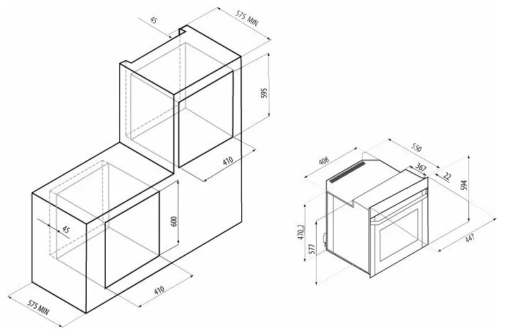 Размеры для встраивания ВхШхГ
