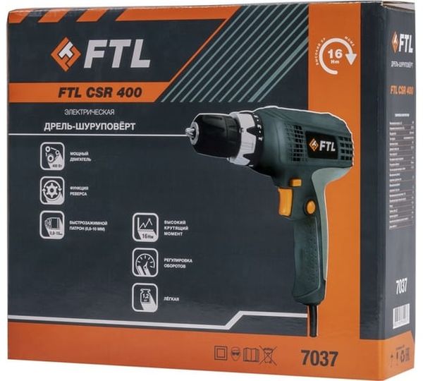 Сетевая дрель-шуруповерт FTL CSR 7037, 16 Нм, 400 Вт