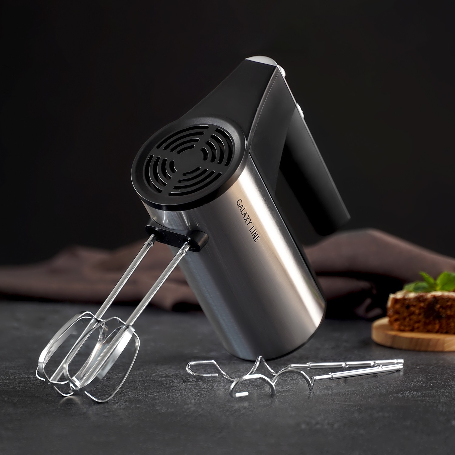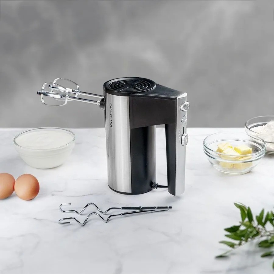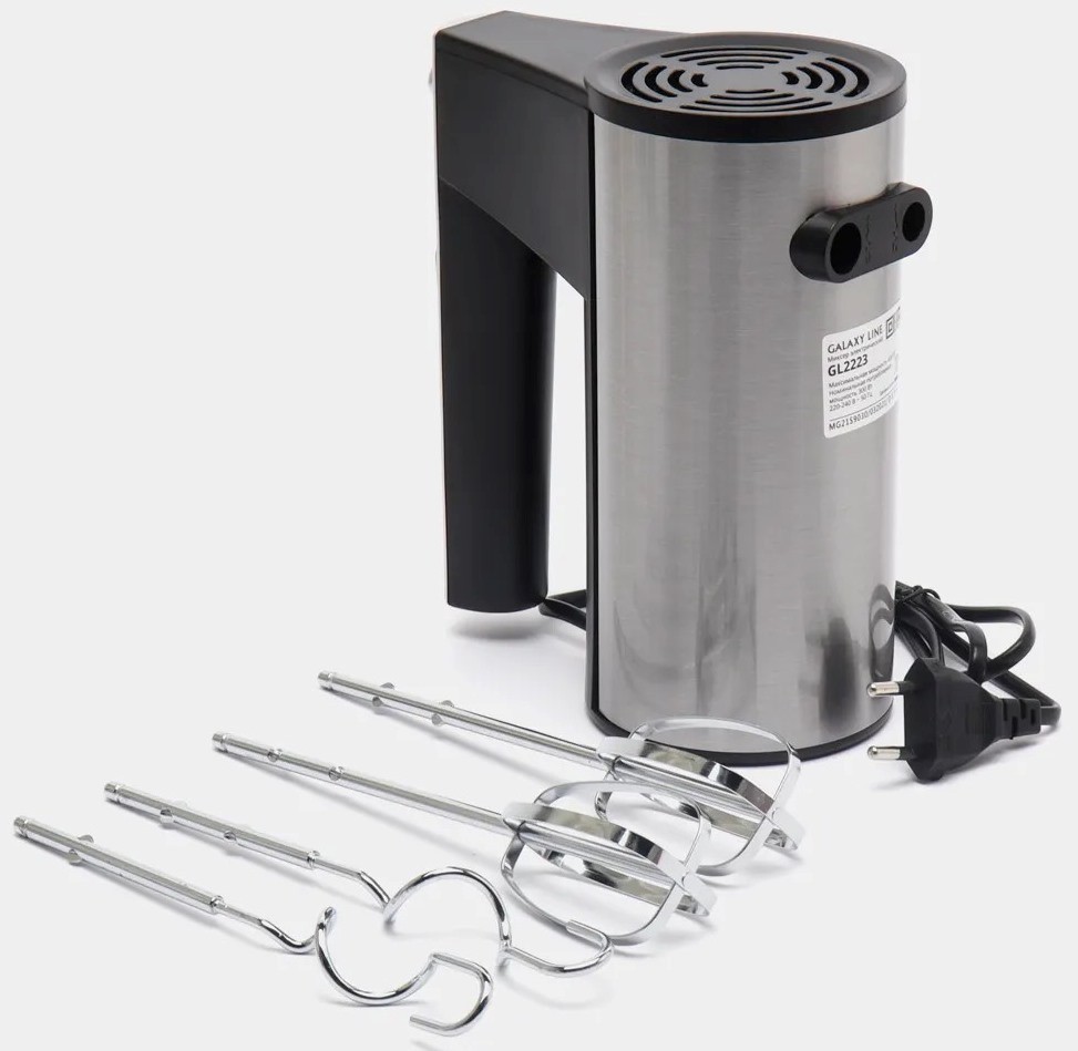 венчики для взбивания - 2 шт, крюки для замешивания теста - 2 шт, руководство по эксплуатации