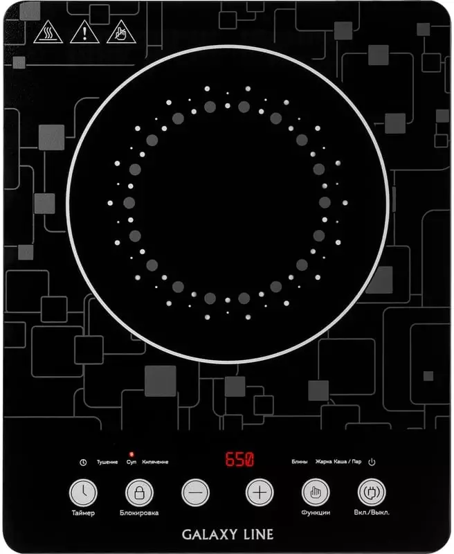 блокировка от детей, дисплей, защитное отключение, индикатор работы, индикаторы остаточного тепла, таймер