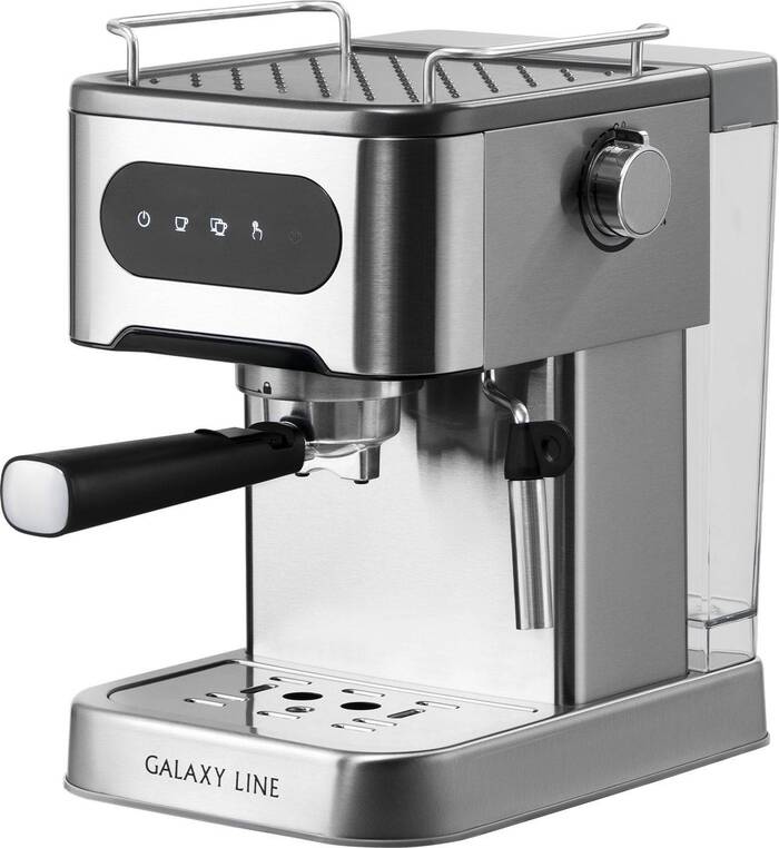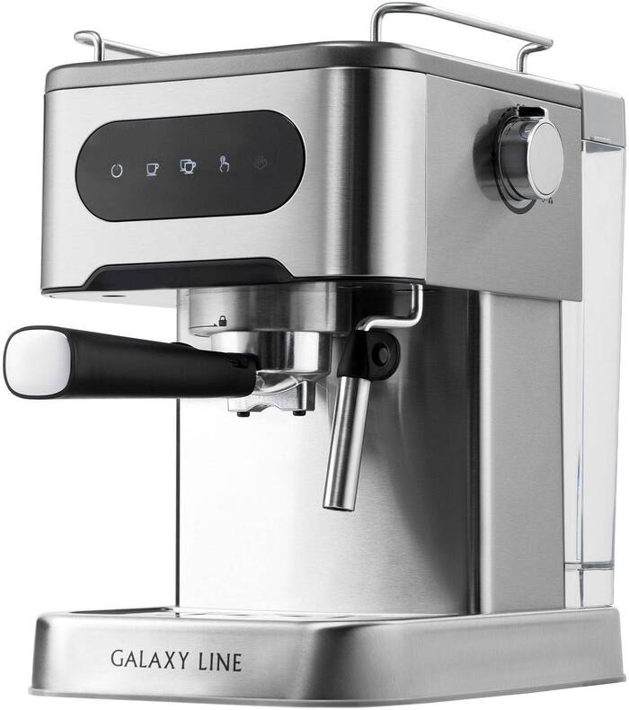 Кофеварка рожковая Galaxy Line GL 0761 в серебристом корпусе предназначена для тех, кто хочет готовить эспрессо и молочные кофейные напитки дома с профессиональным набором функций.