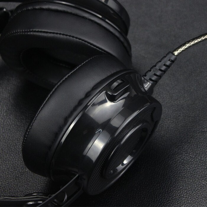 Наушники имеют стильный дизайн с ярким подсвечиванием, которое подчеркивает их игровую направленность и создает атмосферу. Амбушюры с мягкими покрытиями и регулируемое оголовье позволяют настроить наушники под индивидуальные предпочтения, обеспечивая удобство при длительном ношении. Гибкий микрофон легко регулируется, что способствует четкой передаче голоса в ходе общения с командой.