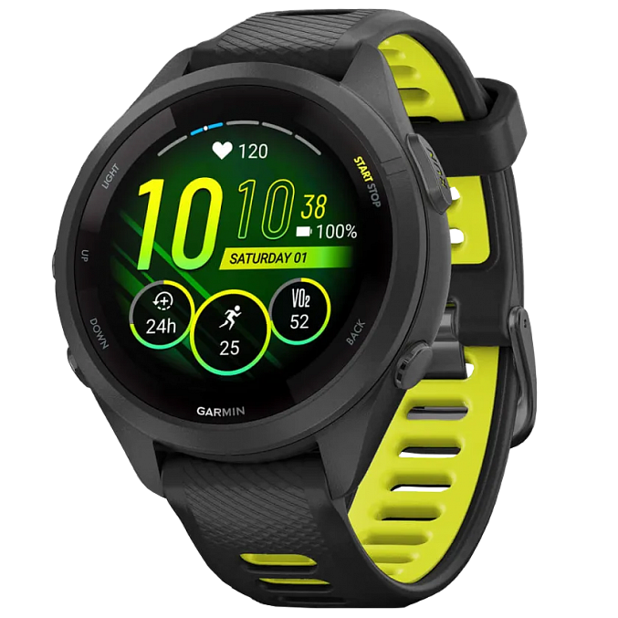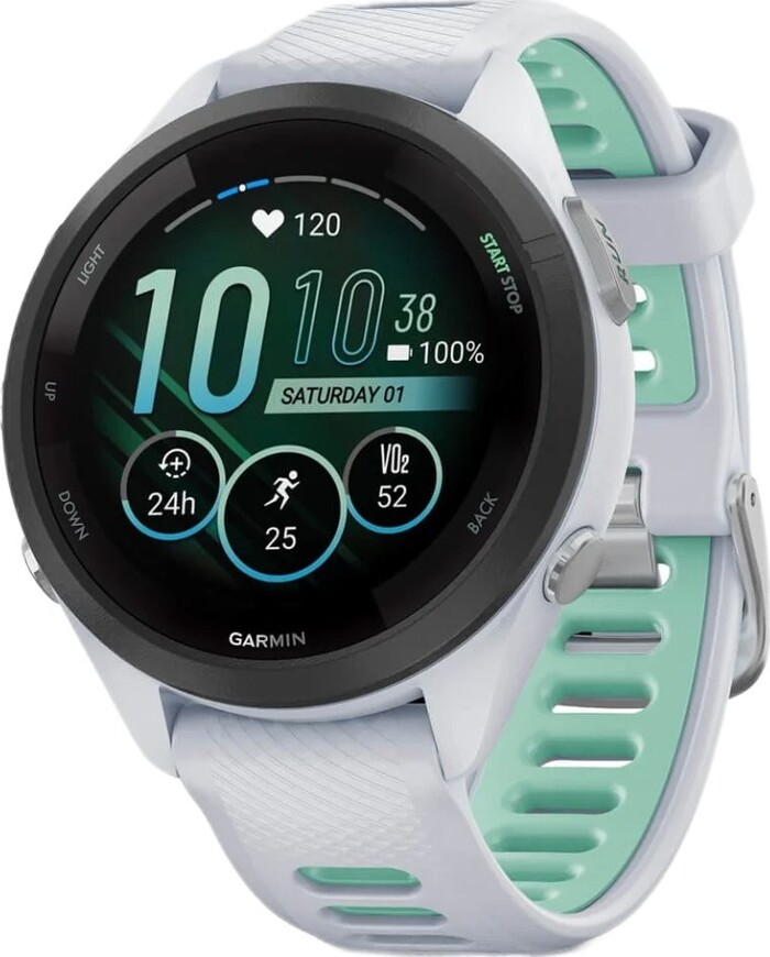 Forerunner 265S – это прочный спортивный гаджет. Часы выполнены из армированного полимера, а безель изготовлен из анодированного алюминия, что гарантирует легкость и надежность.