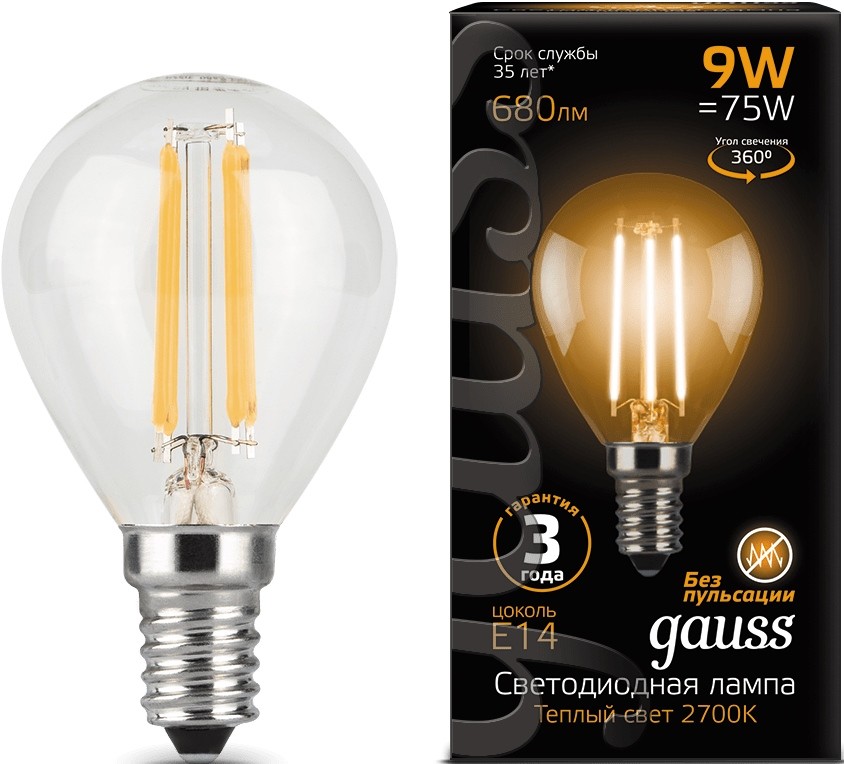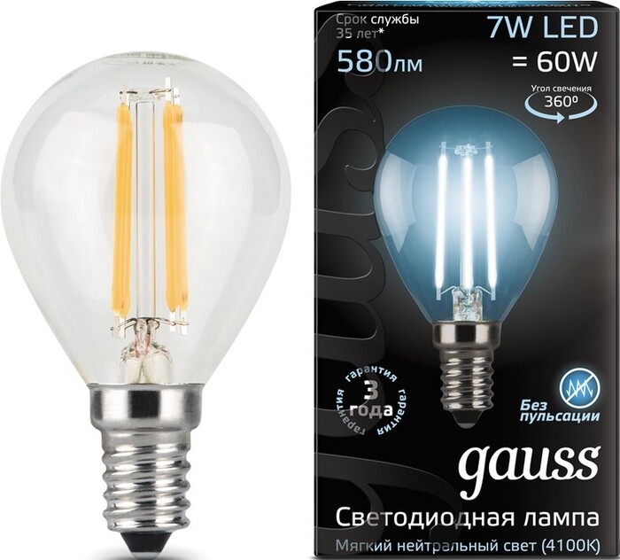 Gauss LED G45 9W 4100K E14 105801209